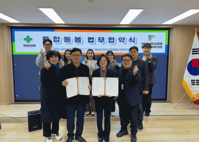 [NWS¹æ¼Û=Çѽ¸ñ ±âÀÚ]Áö³­ 9ÀÏ, Çϳ²½Ã ÀçÅÃÀÇ·á¼¾ÅÍ¿Í Çϳ²½Ã¹Ì»ç°­º¯Á¾ÇÕ»çȸº¹Áö°üÀº Áö¿ª»çȸ ³» Ãë¾à°èÃþÀÇ º¹Áö¼­ºñ½º ÁõÁø°ú ÅëÇÕµ¹º½ ü°è °­È­¸¦ À§ÇÑ ¾÷¹«Çù¾àÀ» ü°áÇß´Ù. À̹ø ¾÷¹«Çù¾àÀº Çϳ²½Ã °ü³» Àå±â¿ä¾çµî±ÞÀÚ Áß ¡¦