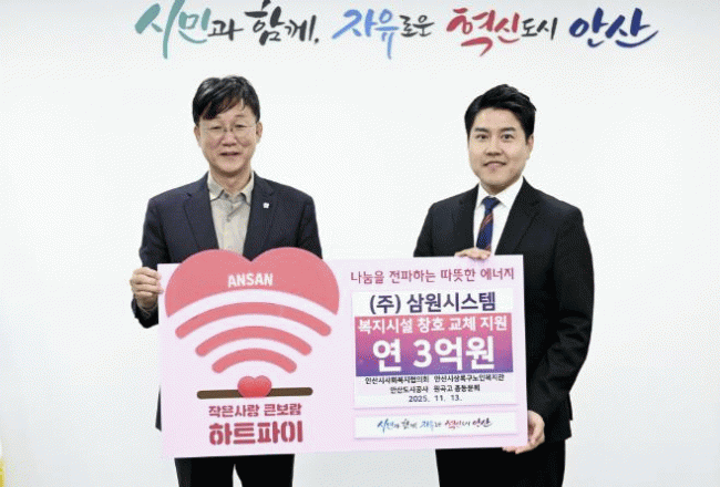 [»çȸ] ¾È»ê½Ã, ¢ß»ï¿ø½Ã½ºÅÛÀ¸·ÎºÎÅÍ 3¾ï ¿ø ±Ô¸ð ³ëÈĺ¹Áö½Ã¼³ âȣ ±³Ã¼ Áö¿ø¹Þ¾Æ |2025. 11.14