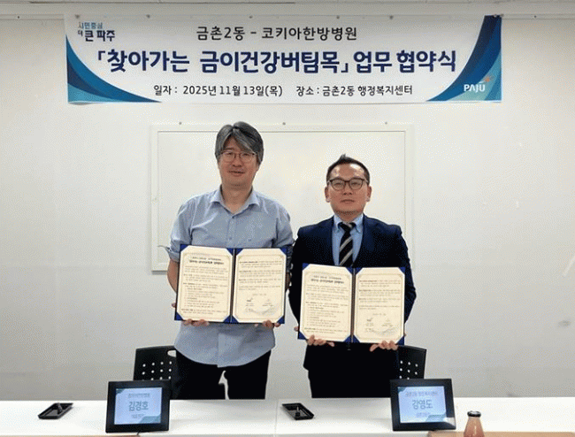 [NWS¹æ¼Û=Çѽ¸ñ ±âÀÚ]ÆÄÁֽà ±ÝÃÌ2µ¿Àº Áö³­ 13ÀÏ °ü³» ÀÇ·á±â°üÀÎ ÄÚŰ¾ÆÇѹ溴¿ø°ú ÇÔ²² º¹Áö»ç°¢Áö´ë ÇØ¼Ò ¹× ¸ÂÃãÇü º¹Áö ¼­ºñ½º Á¦°øÀ» À§ÇÑ ¡®Ã£¾Æ°¡´Â ±ÝÀ̰ǰ­¹öÆÀ¸ñ¡¯¾÷¹«Çù¾àÀ» ü°áÇß´Ù°í ¹àÇû´Ù. À̹ø Çù¾àÀº °æÁ¦Àû ¾î·Á¿ò¡¦