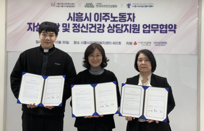 [NWS¹æ¼Û=Çѽ¸ñ ±âÀÚ]½ÃÈï½Ã¿Ü±¹Àκ¹Áö¼¾ÅÍ´Â Áö³­ 10¿ù 30ÀÏ ½ÃÈï½ÃÀڻ쿹¹æ¼¾ÅÍ, Çѱ¹ÀÌÁֹΰǰ­Çùȸ À§ÇÁ·»Áî¿Í ÇÔ²² ¡®ÀÌÁֳ뵿ÀÚ Àڻ쿹¹æ ¹× Á¤½Å°Ç°­ »ó´ãÁö¿ø ¾÷¹«Çù¾à¡¯À» ü°áÇß´Ù. À̹ø Çù¾àÀº ÀÌÁֳ뵿ÀÚÀÇ Á¤½Å°Ç°­ ¹®Á¦¿Í¡¦