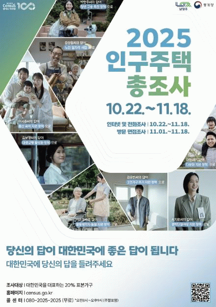 [NWS¹æ¼Û=Çѽ¸ñ ±âÀÚ]³²¾çÁֽô 9ÀϱîÁö ¡®2025 Àα¸ÁÖÅÃÃÑÁ¶»ç¡¯ÀÇ ¼º°øÀû ÃßÁøÀ» À§ÇØ Á¶»ç¿øÀ» Ãß°¡ ¸ðÁýÇÑ´Ù°í ¹àÇû´Ù.