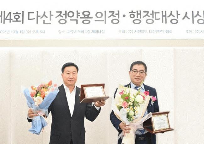 [NWS¹æ¼Û=Çѽ¸ñ ±âÀÚ]ÆÄÁÖ½ÃÀÇȸ ¹Ú´ë¼º ÀÇÀå, ¼ÕÇü¹è ÀÇ¿øÀº 10¿ù 1ÀÏ ÆÄÁÖ½ÃÀÇȸ¿¡¼ ¿¸° Á¦4ȸ ´Ù»ê Á¤¾à¿ë ÀÇÁ¤¡¤ÇàÁ¤´ë»ó¿¡ ±âÃÊÀÇ¿ø ºÎ¹® ´ë»óÀ» ¼ö»óÇß´Ù. ¶ÇÇÑ ÆÄÁÖ¸¦ Áö¿ª±¸·Î µÐ °æ±âµµÀÇȸ ÀÌÇѱ¹ µµÀÇ¿øµµ ±¤¿ªÀÇ¿ø ºÎ¹®¿¡ ÇÔ²² ¼ö»óµÇ¾î Àǹ̸¦ ´õÇß´Ù.