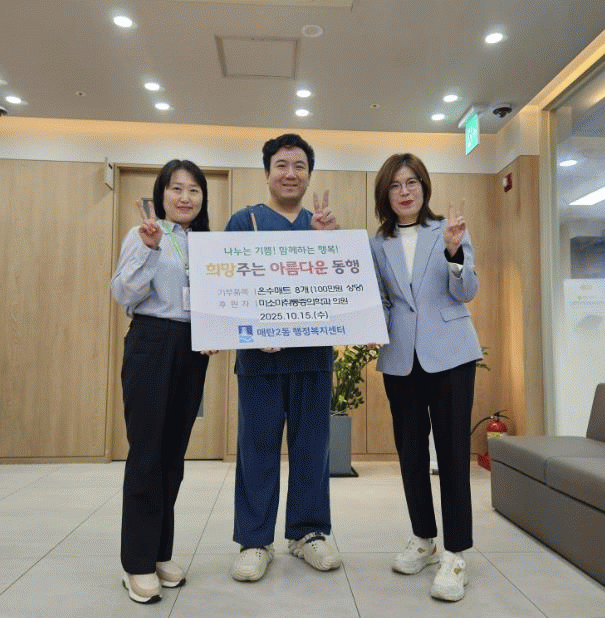 [NWS¹æ¼Û=Çѽ¸ñ ±âÀÚ]Áö³ 15ÀÏ, ¼ö¿ø½Ã ¿µÅ뱸 ¼ÒÀç ¹Ì¼Ò¸¶ÃëÅëÁõÀÇÇаúÀÇ¿øÀº °ü³» Àú¼Òµæ ¾î¸£½ÅµéÀÌ µû¶æÇÑ °Ü¿ïÀ» º¸³¾ ¼ö ÀÖµµ·Ï ¸Åź2µ¿ ÇàÁ¤º¹Áö¼¾ÅÍ¿¡ 100¸¸¿ø »ó´çÀÇ ¿Â¼ö¸ÅÆ® 8¼¼Æ®¸¦ ±âºÎÇß´Ù.