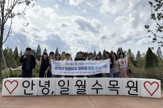 [NWS¹æ¼Û=Çѽ¸ñ ±âÀÚ]¼ö¿ø½Ã ±Ç¼±±¸´Â Áö³ 14ÀϺÎÅÍ 16ÀϱîÁö, 3Àϰ£ ÀÏ¿ù¼ö¸ñ¿ø¿¡¼ ¹Î¿ø ´ã´ç °ø¹«¿øÀ» À§ÇÑ '±Ç¼±±¸ ¹Î¿ø´ã´ç Èú¸µÇÁ·Î±×·¥'À» ¿î¿µÇß´Ù.