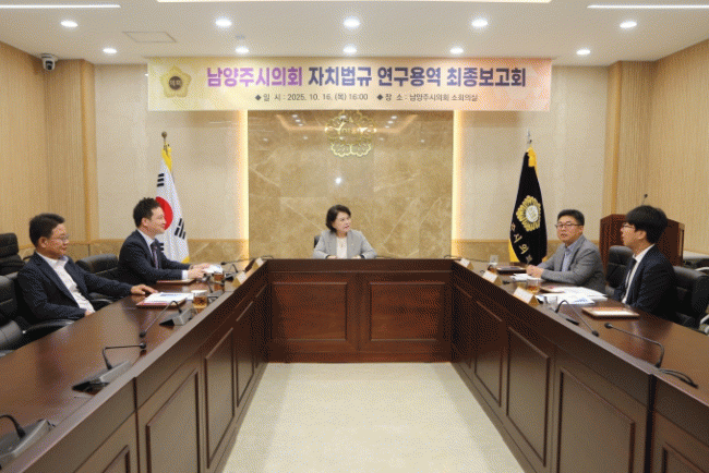 ³²¾çÁÖ½ÃÀÇȸ, '³²¾çÁÖ½ÃÀÇȸ ÀÚÄ¡¹ý±Ô ¿¬±¸¿ë¿ª' ÃÖÁ¾º¸°íȸ °³ÃÖ =Çѽ¸ñ ±âÀÚ |