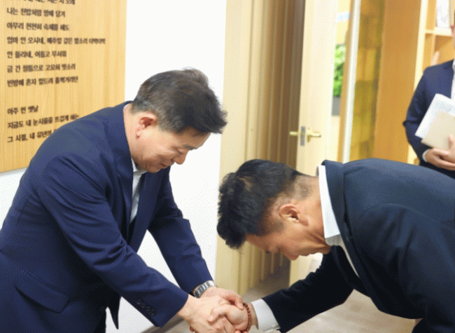 ¹Ú ½ÃÀåÀº Áö³ 16ÀÏ ½ÃÀå Áý¹«½Ç¿¡¼ ¼Û »çÀåÀ» ¸¸³ª Áö³ 4¿ù ¹ß»ýÇÑ ½Å¾È»ê¼± °ø»çÇöÀå ºØ±« »ç°íÀÇ Ã¥ÀÓÀ» ¾öÁßÈ÷ ÁöÀûÇÏ¸ç °·ÂÈ÷ Ç×ÀÇÇß°í, ÀÌ¿¡ ¼Û »çÀåÀº ¸Ó¸® ¼÷¿© »ç°úÇß´Ù.