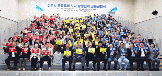 ÆÄÁÖ½Ã¿Í 75°³ °øµ¿ÁÖÅà ´ÜÁö°¡ Âü¿©ÇÑ À̹ø Çù·Â½ÄÀ¸·Î ¾ÆÆÄÆ® ÀÔÁÖÀÚ´ëÇ¥¿Í ´ëÇÑÁÖÅðü¸®»çÇùȸ ÆÄÁÖÁöºÎ, °æºñ³ëµ¿ÀÚ µî °øµ¿ÁÖÅà °ü°èÀÚµé °£ ³ë»ç »ó»ýÀ» À§ÇÑ °ø°¨´ë°¡ Çü¼ºµÆ´Ù. ƯÈ÷ Ãʴܱ⠰è¾à Áö¾ç µî °øµ¿ÁÖÅà ³ëµ¿ÀÚÀÇ ±Ù·Î Á¶°ÇÀÌ ½ÇÁúÀûÀ¸·Î °³¼±µÉ °ÍÀ¸·Î ±â´ëµÈ´Ù.