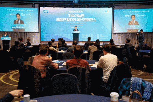 [NWS¹æ¼Û=ÇãÀº¼ ±âÀÚ]°æ±âµµ´Â Ãʰí·É»çȸ ÁøÀÔÀ̶ó´Â Àα¸±¸Á¶ º¯È ¼Ó¿¡¼ ÁßÀå³âÃþÀÇ »çȸÀû ¿ªÇÒ ÀçÁ¤¸³°ú ÀÏÀÚ¸® ¹®Á¦¿¡ ´ëÇÑ ÇØ¹ýÀ» ¸ð»öÇϱâ À§ÇØ 23ÀÏ ¼ö¿ø ³ëº¸ÅÚ¿¡¼ ¡®Áö¼Ó°¡´ÉÇÑ ÁßÀå³â ÀÏÀÚ¸® Çõ½Å ÄÜÆÛ·±½º¡¯¸¦ °³ÃÖÇß´Ù.