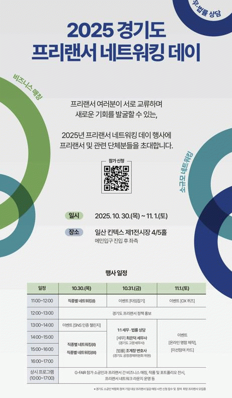 ÁÖ¿ä ÇÁ·Î±×·¥À¸·Î´Â ¡ãÁ÷Á¾º° ¼Ò±Ô¸ð ³×Æ®¿öÅ· ¡ã1:1 ¼¼¹«.¹ý·ü ¹«·á »ó´ã ¡ãG-FAIR Âü°¡ ¼Ò°øÀΰú ÇÁ¸®·£¼­ °£ ºñÁî´Ï½º ¸ÅĪ ¡ãÇÁ¸®·£¼­ ÀÛǰ ¹× Æ÷Æ®Æú¸®¿À Àü½Ã µîÀÌ ÀÖ´Ù.