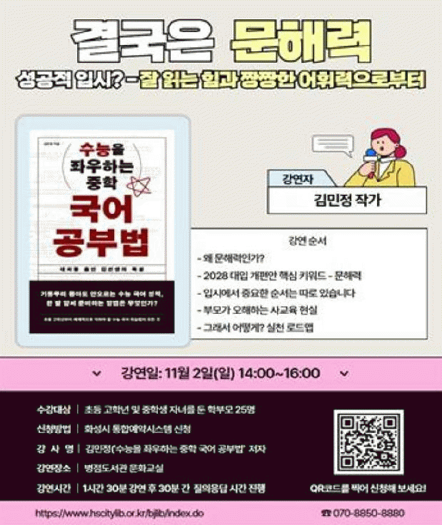º´Á¡µµ¼°ü¿¡¼´Â ¡ã '¼ö´ÉÀ» Á¿ìÇÏ´Â ÃÊ¡¤Áßµî ±¹¾î °øºÎ¹ý'ÀÇ ÀúÀÚ ±è¹ÎÁ¤ °»çÀÇ °¿¬°ú ¡ã '³ªº¸´Ù ¶È¶ÈÇÑ AI¿Í »ç´Â ¹ý'ÀÇ ¹Ýº´Çö ÀÛ°¡¿ÍÀÇ ¸¸³²À» ¿î¿µÇϸç, ¾ÈÈÁßÇб³¿¡¼´Â ±³³» ÇлýµéÀ» ´ë»óÀ¸·Î ¡ã 'ȸ»öÀΰ£', '13ÀÏÀÇ ±è³²¿ì'ÀÇ ÀúÀÚ ±èµ¿½Ä ÀÛ°¡¿ÍÀÇ ¸¸³² ¹× Áø·Î ºÏ ÄܼƮ¸¦ ÁøÇàÇÒ ¿¹Á¤ÀÌ´Ù.