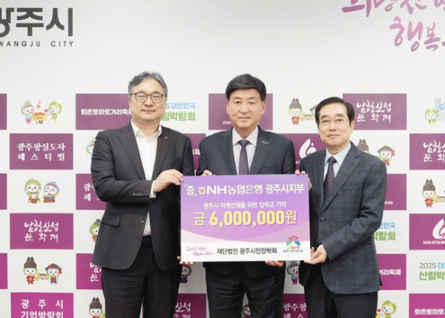 [NWS¹æ¼Û=Çѽ¸ñ ±âÀÚ]NH³óÇùÀºÇà ±¤ÁÖ½ÃÁöºÎ´Â 29ÀÏ ±¤ÁÖ½ÃûÀ» ¹æ¹®ÇØ Áö¿ªÀÎÀç À°¼ºÀ» À§ÇÑ ÀåÇÐ±Ý 600¸¸¿øÀ» ±¤Áֽÿ¡ ±âŹÇß´Ù.