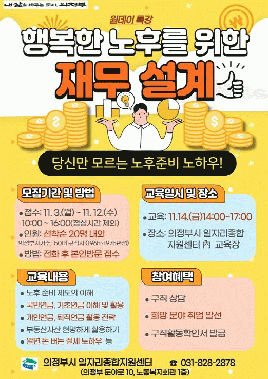 [NWS¹æ¼Û=Çѽ¸ñ ±âÀÚ]ÀÇÁ¤ºÎ½Ã´Â ±¸Á÷ÀÚÀÇ Ãë¾÷ µ¿±â °È¸¦ À§ÇØ ¡®ÇູÇÑ ³ëÈĸ¦ À§ÇÑ À繫 ¼³°è¡¯ Ư°À» 11¿ù 14ÀÏ ÀÇÁ¤ºÎ½Ã ÀÏÀÚ¸®Á¾ÇÕÁö¿ø¼¾ÅÍ¿¡¼ ½Ç½ÃÇÑ´Ù.
