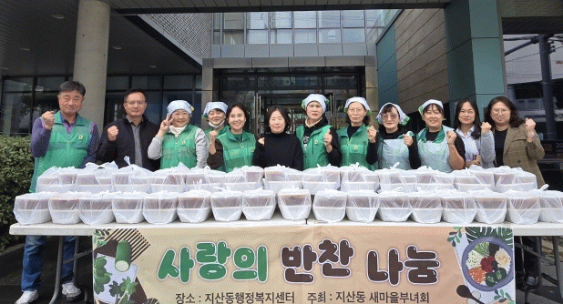 Áö»êµ¿ ÇàÁ¤º¹Áö¼¾ÅÍ¿¡¼ ÁøÇàµÈ À̹ø ³ª´® Çà»ç´Â ºÎ³àȸ ȸ¿øµéÀÌ Á¤¼º½º·´°Ô Á¶¸®ÇÏ¿© ¸¶·ÃÇÑ ¹ÝÂùÀ» Áö¿ª ³» Ȧ¸ö³ëÀÎ ¹× Àú¼Òµæ°¡Á¤ µî 50°¡±¸¿¡ Àü´ÞÇÔÀ¸·Î½á Áö¿ª»çȸ¿¡ ¿ÂÁ¤À» ÀüÇß´Ù.