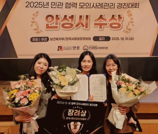 [NWS¹æ¼Û=Çѽ¸ñ ±âÀÚ]¾È¼º½Ã´Â Áö³ 31ÀÏ º¸°Çº¹ÁöºÎ¿Í Çѱ¹»çȸº¸ÀåÁ¤º¸¿øÀÌ ÁÖ°üÇÑ'¹Î?°ü Çù·Â ¸ðÀÇ»ç·Ê°ü¸® °æÁø´ëȸ'¿¡¼ Àå·Á»óÀ» ¼ö»óÇß´Ù°í ¹àÇû´Ù.