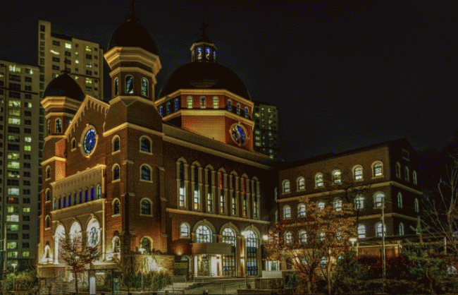 ¡®±¤±³1µ¿¼º´ç(ÀÌÀǵ¿ 1371)¡¯Àº ¿Ü±¹ °ü±¤Áö¿¡¼ ¸¸³¯ ¹ýÇÑ ¸ð½ÀÀ¸·Î ¾ÆÆÄÆ® ½£ »çÀ̸¦ º¯ÁÖÇÏ¸ç ½Åµµ½ÃÀÇ µðÀÚÀÎÀ» ÇÑÃþ ¼¼·ÃµÇ°Ô ¸¸µç´Ù. ¼º´ç ¿Ü°üÀº ¼¾çÀÇ ÀüÅëÀûÀÎ °ÇÃà ¿ä¼ÒÀÎ µ¼°ú ¾ÆÄ¡¸¦ Çö´ëÀûÀ¸·Î °£°áÇÏ°Ô µðÀÚÀÎÇØ ¾Æ¸§´Ù¿òÀ» ´õÇß´Ù. ƯÈ÷ µ¼ Çü½ÄÀ¸·Î ±¸ÇöÇÑ ¼ºÀüÀÇ °ø°£°¨, õÀå¿¡ Åõ»çµÇ´Â ½ºÅ×Àεå±Û¶ó½ºÀÇ ºû, ÀÌ¿ô¿¡ °³¹æµÈ ±¤Àå µîÀÌ Á¾±³ °ÇÃ๰·Î¼ÀÇ °¡Ä¡¸¦ ³ôÀδÙ.