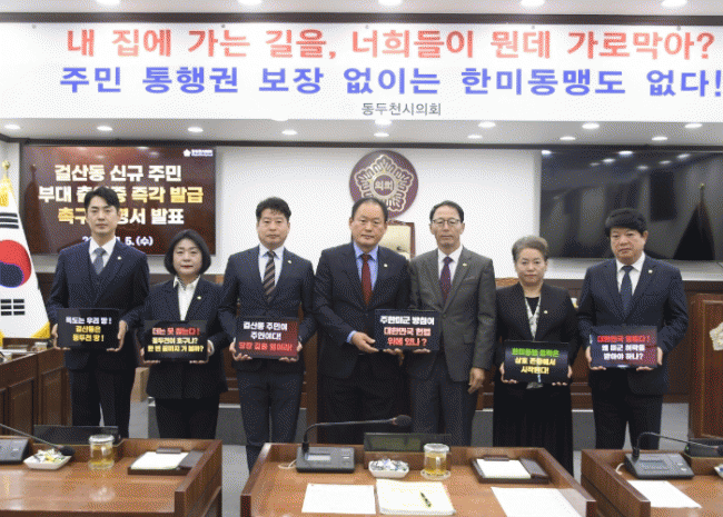 [NWS¹æ¼Û=Çѽ¸ñ ±âÀÚ]µ¿µÎõ½ÃÀÇȸ´Â 5ÀÏ, ÁÖÇѹ̱º ¿ë»ê-ÄÉÀ̽à ±âÁö»ç·ÉºÎÀÇ °É»êµ¿ ½Å±Ô ÀüÀÔ Áֹο¡ ´ëÇÑ ºÎ´ë ÃâÀÔÁõ ¹ß±Þ °ÅºÎ »çÅÂ¿Í °ü·Ã, ¡°ÁֹΠÅëÇà±Ç º¸Àå ¾øÀÌ´Â Çѹ̵¿¸Íµµ ¾ø´Ù¡±¶ó´Â Á¦¸ñÀÇ °·ÂÇÑ ±Ôź ¼º¸íÀ» ¹ßÇ¥Çß´Ù.