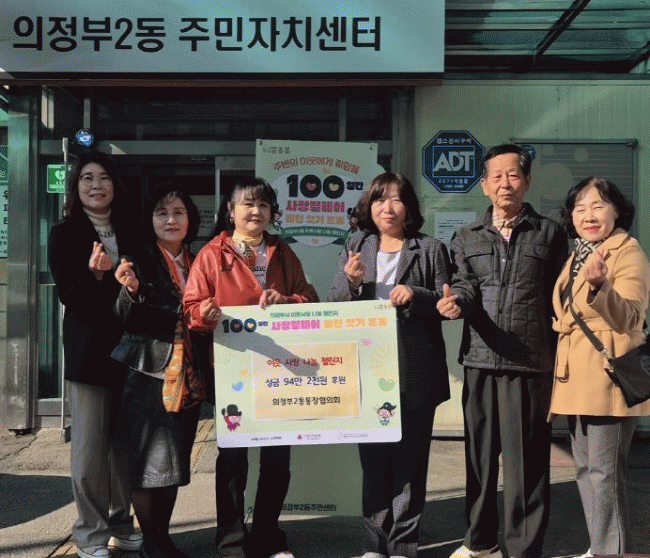 [NWS¹æ¼Û=Çѽ¸ñ ±âÀÚ]ÀÇÁ¤ºÎ½Ã ÀÇÁ¤ºÎ2µ¿Áֹμ¾ÅÍ´Â 11¿ù 5ÀÏ ÀÇÁ¤ºÎ2µ¿ ÅëÀåÇùÀÇȸ°¡ ¼º±Ý 94¸¸2õ ¿øÀ» Àü´ÞÇÏ¸ç ¡®100Àϰ£ »ç¶û¸±·¹ÀÌ ¹èÅÏ Àձ⡯ÀÇ ½ÃÀÛÀ» ¾Ë·È´Ù°í ¹àÇû´Ù.