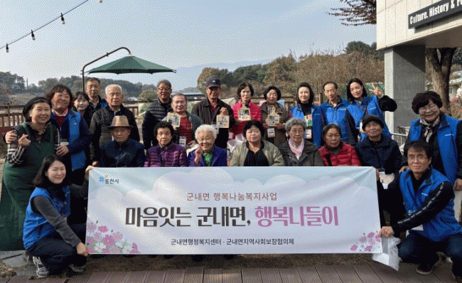 [NWS¹æ¼Û=Çѽ¸ñ ±âÀÚ]Æ÷õ½Ã ±º³»¸é Áö¿ª»çȸº¸ÀåÇùÀÇü´Â Áö³ 6ÀÏ ±º³»¸é ¸í»ê¸® ¿ï¹Ì¿¬²É¸¶À»¿¡¼ Á¤¼Ãë¾à ¾î¸£½Å ¹× ÁßÀå³âÃþ 13¸íÀ» ´ë»óÀ¸·Î ¡®¸¸³ª¿ä(Öû)¡¯ ¸ñ°øÃ¼Çè ÇÁ·Î±×·¥À» ÁøÇàÇß´Ù.