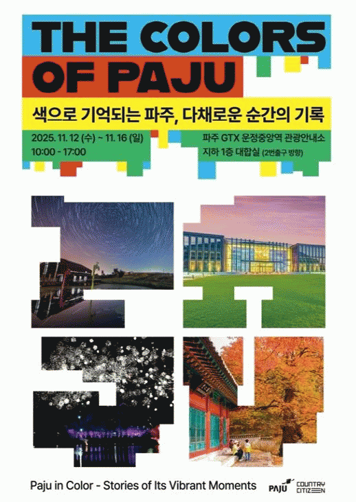 À̹ø Çà»ç´Â ¡®´õ Ä÷¯½º ¿Àºê ÆÄÁÖ(THE COLORS OF PAJU) - »öÀ¸·Î ±â¾ïµÇ´Â ÆÄÁÖ, ´Ùä·Î¿î ¼ø°£ÀÇ ±â·Ï¡¯À» ÁÖÁ¦·Î, ÆÄÁÖ½ÃÀÇ °ü±¤ ¸Å·ÂÀ» º¸°í¡¤´ã°í¡¤ÀüÇÏ°í¡¤±â·ÏÇÏ°í¡¤°£Á÷Çϴ üÇèÇü ÇÁ·Î±×·¥À¸·Î ±¸¼ºµÈ´Ù.