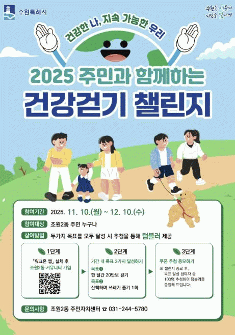 | ¼ö¿ø½Ã Àå¾È±¸ Á¶¿ø2µ¿, '2025 Áֹΰú ÇÔ²²ÇÏ´Â °Ç°°È±â 縰Áö' Âü¿©ÀÚ ¸ðÁý =Çѽ¸ñ ±âÀÚ |