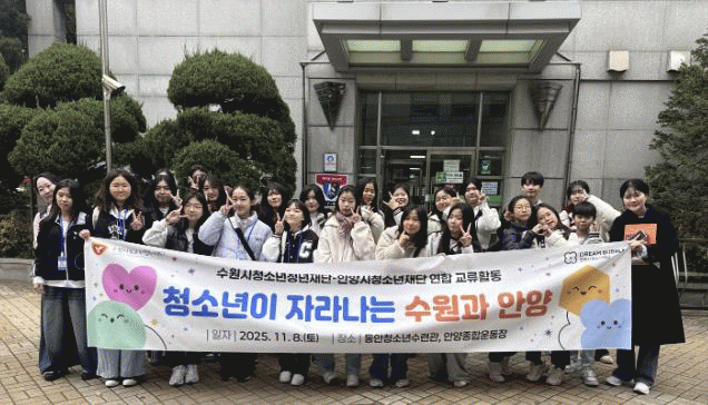 [NWS¹æ¼Û=Çѽ¸ñ ±âÀÚ]¼ö¿ø½Ãû¼Ò³âû³âÀç´Ü ¼Ò¼Ó û¼Ò³â°ú ¾È¾ç½Ãû¼Ò³âÀç´Ü ¼Ò¼Ó û¼Ò³âÀº Áö³ 11¿ù 8ÀÏ µ¿¾Èû¼Ò³â¼ö·Ã°ü ¹× ¾È¾çÁ¾ÇտÀå(½Ç³»ºù»óÀå)¿¡¼ û¼Ò³â ±³·ùȰµ¿ ¡®Ã»¼Ò³âÀÌ Àڶ󳪴 ¼ö¿ø°ú ¾È¾ç¡¯À» ¼º°øÀûÀ¸·Î ¸¶ÃÆ´Ù.