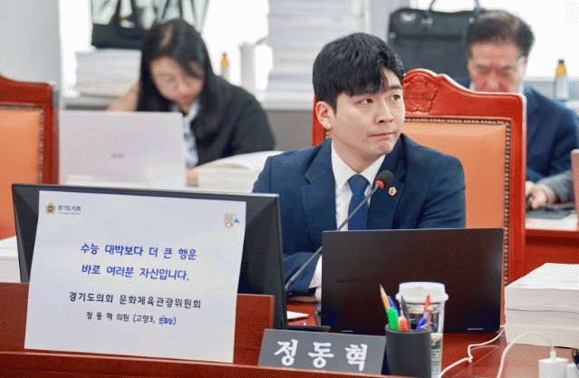 | °æ±âµµÀÇȸ Á¤µ¿Çõ ÀÇ¿ø, e½ºÆ÷Ã÷ ¼±¼ö Áذá½Â ÃâÀü ¹«»ê...°æ±âµµÀå¾ÖÀÎüÀ°È¸ ¡®¿î¿µ ºÎ½Ç¡¯ °·Â ÁúŸ =Çѽ¸ñ ±âÀÚ |