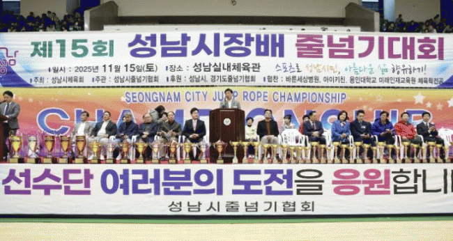 [NWS¹æ¼Û=Çѽ¸ñ ±âÀÚ]¼º³²½ÃÀÇȸ´Â 15ÀÏ ¼º³²½Ç³»Ã¼À°°ü¿¡¼ ¿¸° Á¦15ȸ ¼º³²½ÃÀå¹è Áٳѱâ´ëȸ¿¡ Âü¼®ÇØ Âü°¡ ¼±¼öµé°ú °¡Á·µéÀ» °Ý·ÁÇß´Ù. À̹ø ´ëȸ´Â °³ÀÎÀü°ú ´ÜüÀüÀ» ºñ·ÔÇÑ ´Ù¾çÇÑ Áٳѱâ Á¾¸ñÀ» ÅëÇØ ¾î¸°À̺ÎÅÍ Ã»¼Ò³â±îÁö ¿îµ¿ ´É·ÂÀ» °Ü·ç´Â »ýȰüÀ°ÀÇ ÀåÀ¸·Î ¸¶·ÃµÆ´Ù.