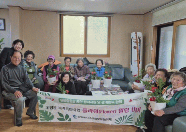 [NWS¹æ¼Û=Çѽ¸ñ ±âÀÚ]¿À»ê½Ã ÃÊÆòµ¿Áö¿ª»çȸº¸ÀåÇùÀÇüÀÇ ´ëÇ¥ ¸¶À»º¹Áö»ç¾÷ÀÎ ¡®Çöó¿ö Èú¸µ UP¡¯ ÇÁ·Î±×·¥ÀÌ Áö³ 17ÀÏ ¼ºÈ²¸®¿¡ ¸¶¹«¸®µÆ´Ù. ¡®Çöó¿ö Èú¸µ UP¡¯Àº ²É(¹Ý·Á½Ä¹°)À» Ȱ¿ëÇÑ ¿ø¿¹ ½É¸®È°µ¿À¸·Î, ¿ÃÇØ ÃÑ 6ȸ ¿î¿µ °èȹ Áß ¼¼ ¹øÂ°·Î ¼Ã̰æ·Î´ç¿¡¼ Áö¿ªÁÖ¹ÎÀ» ´ë»óÀ¸·Î ÁøÇàµÇ¸ç Å« È£ÀÀÀ» ¾ò¾ú´Ù.