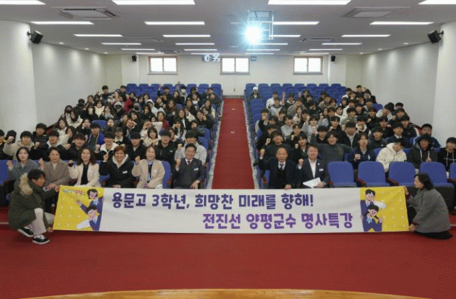 [NWS¹æ¼Û=Çѽ¸ñ ±âÀÚ]ÀüÁø¼± ¾çÆò±º¼ö´Â Áö³ 19ÀÏ ¿ë¹®°íµîÇб³ ¼Ò°´ç¿¡¼ 3Çгâ Çлý 140¿© ¸íÀ» ´ë»óÀ¸·Î ¡®Å« ²ÞÀ» ÇâÇÑ Áغñ°¡ ¹Ì·¡¸¦ ¿©´Â Èû¡¯À» ÁÖÁ¦·Î ¸í»ç Ư°À» ÁøÇàÇß´Ù.