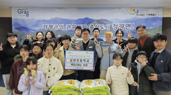 [NWS¹æ¼Û=Çѽ¸ñ ±âÀÚ]°¡Æò±º ûÆò¸é »óõÃʵîÇб³ ±³Á÷¿ø°ú ÇлýµéÀÌ Ãֱ٠ûÆò¸é ÇàÁ¤º¹Áö¼¾Å͸¦ ã¾Æ Áö¿ªÀÇ ¾î·Á¿î ÀÌ¿ôÀ» À§ÇØ ¹é¹Ì 10Æ÷(10kg µéÀÌ)¸¦ ±âŹÇß´Ù.