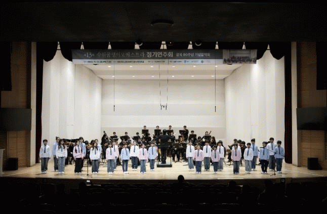 Áö³ 18ÀÏ ¿ÀÈÄ 7½Ã ¼ö¿øÃ»¼Ò³â¹®È¼¾ÅÍ ¿Â´©¸®¾ÆÆ®È¦. 300¿©¸íÀÇ °ü°´µéÀÌ ¼ûÁ׿© ±â´Ù¸®°í ÀÖ´Â °¡¿îµ¥ Á¶¿ëÇÏ°í Æò¿ÂÇÑ ºÐÀ§±âÀÇ ¡®°£ÁÖ°î Intermezzo(¿ÀÆä¶ó Ä«¹ß·¹¸®¾Æ ·ç½ºÆ¼Ä«³ª Áß)¡¯°¡ ½ÃÀ۵ƴÙ. ¹«´ë¿¡ ÀÚ¸® ÀâÀº 40¿©¸íÀÇ ¿ÀÄɽºÆ®¶ó´Â ±äÀåµÈ ¸ð½ÀÀÌ ¿ª·ÂÇß´Ù. ¡®»ç¿îµå ¿Àºê ¹ÂÁ÷ ¸ðÀ½°î¡¯À¸·Î ¹«´ëÀÇ Áñ°Å¿òÀ» ±ú¿îµ¥ À̾î ÇÕâ´ÜÀÌ ¹«´ë¿¡ ¿Ã¶ó ¡®°ú¼ö¿ø±æ¡¯ µî ±Í¿¡ ÀÍÀº µ¿¿äµéÀ» ºÒ·¯ µ¿½ÉÀ» ±ú¿ü´Ù. Ŭ¶óÀ̸ƽº´Â ¿ÀÄɽºÆ®¶óÀÇ ½Ç·ÂÀ» º¸¿©ÁØ ¡®º£Å亥 ±³Çâ°î 6¹ø Àü¿ø 1¾ÇÀ塯 ¿¬ÁÖ¿´´Ù. À̾î Å©¸®½º¸¶½º Æä½ºÆ¼¹ú°ú ÇÒ·¼·ç¾ß µîÀÇ °îÀ» ¿¬ÁÖÇÏ¸ç ºÐÀ§±â¸¦ ¶ç¿î °ø¿¬Àº ¸¶Áö¸·À¸·Î ûÁß°ú ´Ù°°ÀÌ µ¿¿ä ¡®¹Ý´Þ¡¯À» ºÎ¸£¸ç ¸¶ÃÆ´Ù. ¹«´ë¸¦ ³»·Á¿Â ´Ü¿øµéÀº »ó±âµÈ ¾ó±¼·Î ¡°¹«´ë¿¡¼ ¿¬ÁÖ¸¦ ÇÏ´Ï ¶³·ÈÁö¸¸ »ÑµíÇϰí ÁÁ¾Ò´Ù¡±¸ç ¡°³»³â¿¡µµ ¿ÀÄɽºÆ®¶ó·Î Ȱµ¿ÇÏ¸ç ²À ¹«´ë¿¡ ¼°í ½Í´Ù¡±°í ¸»Çß´Ù.
