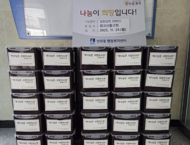 [NWS¹æ¼Û=Çѽ¸ñ ±âÀÚ]¼ö¿ø½Ã Àå¾È±¸ ¿¬¹«µ¿Àº Áö³ 24ÀÏ ±¤±³»ê¿ï±³È¸·ÎºÎÅÍ ¾î·Á¿î ÀÌ¿ôµéÀ» À§ÇÑ ±èÀå±èÄ¡ 50¹Ú½º¸¦ Àü´Þ¹Þ¾Ò´Ù.