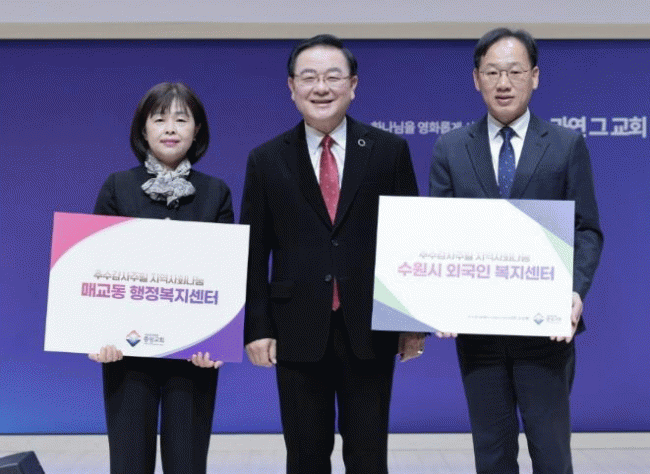 [NWS¹æ¼Û=Çѽ¸ñ ±âÀÚ]Áö³ 23ÀÏ ¼ö¿øÁß¾Óħ·Ê±³È¸´Â Ãß¼ö°¨»çÁÖÀÏÀ» ¸Â¾Æ °ü³» º¹Áö»ç°¢Áö´ë¿¡ ÀÖ´Â ¾î·Á¿î ÀÌ¿ôµéÀÌ µû¶æÇÑ °Ü¿ïÀ» º¸³¾ ¼ö ÀÖµµ·Ï ÈÄ¿ø±Ý 100¸¸¿øÀ» Àü´ÞÇß´Ù.