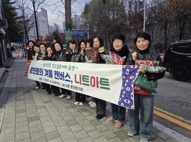 [NWS¹æ¼Û=Çѽ¸ñ ±âÀÚ]ÀÇÁ¤ºÎ½Ã ¼Û»ê2µ¿Áֹμ¾ÅÍ´Â 11¿ù 21ÀÏ ¿ëÇö·Î(¹Î¶ôµ¿ 719¹øÁö ÀÏ¿ø)¿¡¼ ÁøÇàÇÑ ¡®±×·¡ÇÇÆ¼´ÏÆÃ(Graffiti Knitting)¡¯ ±â¹ÝÀÇ ¡®¿ëÇö·ÎÀÇ °Ü¿ï ĵ¹ö½º, ´ÏÆ®¾ÆÆ®¡¯ »ç¾÷À» ¼º°øÀûÀ¸·Î ¸¶¹«¸®Çß´Ù°í ¹àÇû´Ù.