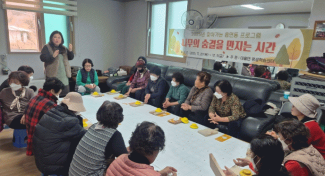 [NWS¹æ¼Û=Çѽ¸ñ ±âÀÚ]ÀÌõ½Ã ´ë¿ù¸é Æò»ýÇнÀ¼¾ÅÍ´Â 11¿ù 27ÀÏ µµ¸®¸® ¸¶À»È¸°ü¿¡¼ 2025³â ã¾Æ°¡´Â À¾¸éµ¿ Æò»ýÇнÀ ÇÁ·Î±×·¥ ¡®³ª¹«ÀÇ ¼û°áÀÌ ¼û ½¬´Â ½Ã°£¡¯À» ÁøÇàÇß´Ù.