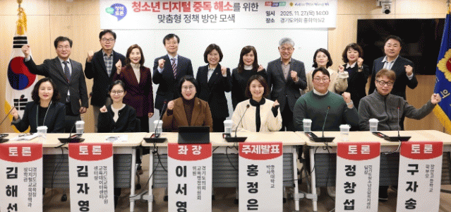 [NWS¹æ¼Û=Çѽ¸ñ ±âÀÚ]°æ±âµµÀÇȸ ±³À°ÇàÁ¤À§¿øÈ¸ À̼­¿µ µµÀÇ¿ø(±¹¹ÎÀÇÈû, ºñ·Ê)ÀÌ ÁÂÀåÀ» ¸ÃÀº 'û¼Ò³â µðÁöÅÐ Áßµ¶ ÇØ¼Ò¸¦ À§ÇÑ ¸ÂÃãÇü Á¤Ã¥ ¹æ¾È ¸ð»ö' Á¤Ã¥Åä·Ðȸ°¡ 27ÀÏ °æ±âµµÀÇȸ ÁßȸÀÇ½Ç 2¿¡¼­ ¿­·È´Ù. À̹ø Åä·Ðȸ´Â °æ±âµµ±³À°Ã»°ú °æ±âµµÀÇȸ°¡ °øµ¿ ÁÖÃÖÇÑ ¡®2025 °æ±â±³À° Á¤Ã¥Åä·Ðȸ¡¯ÀÇ ÀÏȯÀ¸·Î, ½ÉÈ­µÇ°í Àִ û¼Ò³â µðÁöÅÐ Áßµ¶ ¹®Á¦¿¡ ´ëÇÑ ½ÇÈ¿¼º ÀÖ´Â Á¤Ã¥´ë¾ÈÀ» ¸ð»öÇϰíÀÚ ¸¶·ÃµÆ´Ù.
