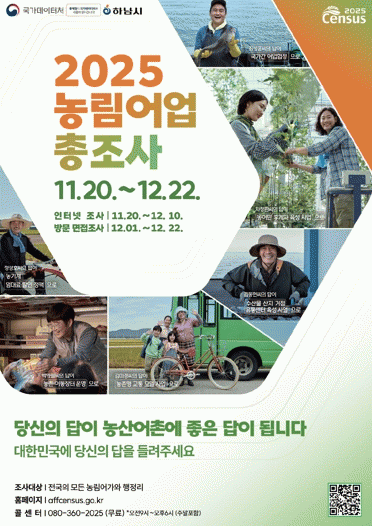 [NWS¹æ¼Û=Çѽ¸ñ ±âÀÚ]Çϳ²½Ã´Â ¡®2025 ³ó¸²¾î¾÷ÃÑÁ¶»ç¡¯¸¦ Áö³­ 11¿ù 20ÀÏ ÀÎÅÍ³Ý Á¶»ç¸¦ ½ÃÀÛÀ¸·Î, 12¿ù 1ÀϺÎÅÍ 22ÀϱîÁö´Â ÀÎÅÍ³Ý Âü¿©°¡ ¾î·Á¿î °¡±¸¸¦ ´ë»óÀ¸·Î ¹æ¹® ¸éÁ¢Á¶»ç¸¦ ½Ç½ÃÇÑ´Ù°í ¹àÇû´Ù.