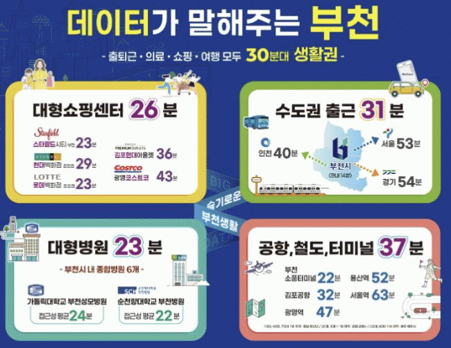 À̸¦ Á¾ÇÕÇØº¸¸é, ºÎõ½Ã¹ÎÀÇ Æò±Õ Ãâ±Ù ¼Ò¿ä ½Ã°£Àº ¡®31ºÐ¡¯À¸·Î, °ü³»´Â ¹°·Ð ¼­¿ï¡¤°æ±â¡¤ÀÎõ ¾îµð·Îµç 1½Ã°£ À̳»·Î ºñ±³Àû ªÀº ½Ã°£ ³» Ãâ±ÙÀÌ °¡´ÉÇÏ´Ù´Â °ÍÀ» ¾Ë ¼ö ÀÖ´Ù.