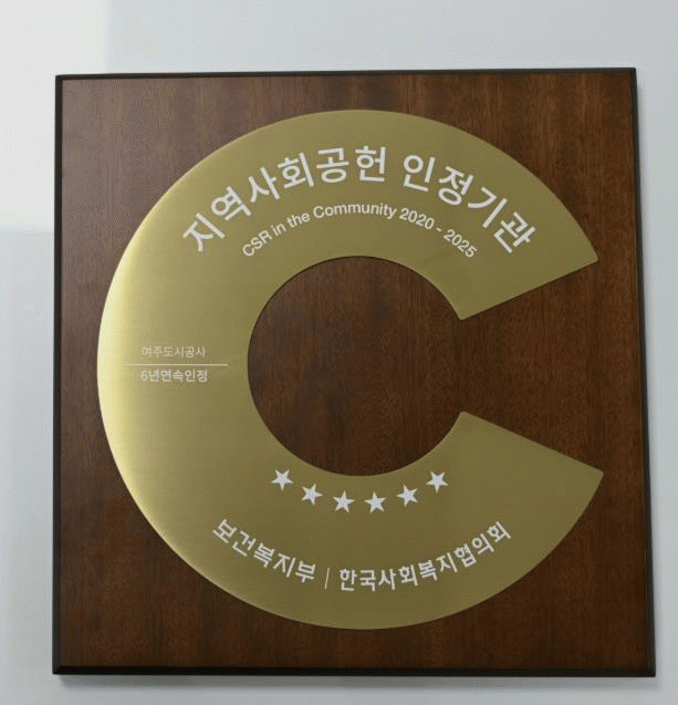 [NWS¹æ¼Û=Çѽ¸ñ ±âÀÚ]¿©ÁÖµµ½Ã°ø»ç´Â Áö¿ª»çȸ °øÇåȰµ¿ÀÇ ¿ì¼ö¼ºÀ» °ø½ÄÀûÀ¸·Î ÀÎÁ¤¹Þ´Â ¡®Áö¿ª»çȸ°øÇå ÀÎÁ¤Á¦(Community Contribution Recognition)¡¯¸¦ 6³â ¿¬¼Ó ȹµæÇß´Ù°í 10ÀÏ ¹àÇû´Ù.
