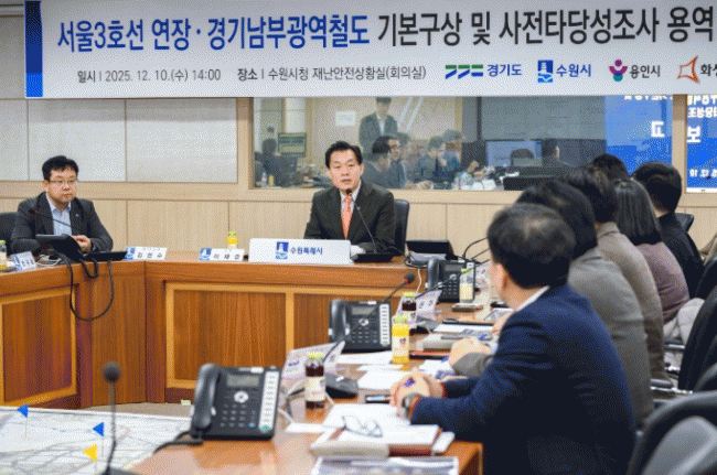 | ¼ö¿øÆ¯·Ê½Ã, ¡®°æ±â³²ºÎ±¤¿ªÃ¶µµ¡¯ Á¦5Â÷ ±¹°¡Ã¶µµ¸Á ±¸Ãà°èȹ ¹Ý¿µ À§ÇØ ÃÑ·Â ±â¿ïÀδ٠¡®¼¿ï3È£¼±-°æ±â³²ºÎ±¤¿ªÃ¶µµ ±âº»±¸»ó ¹× »çÀüŸ´ç¼ºÁ¶»ç¿ë¿ª ÃÖÁ¾º¸°íȸ¡¯ °³ÃÖ =Çѽ¸ñ ±âÀÚ |