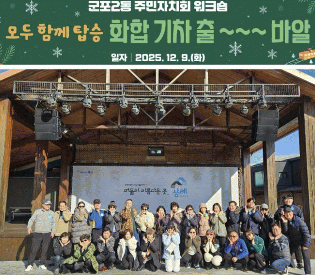 [NWS¹æ¼Û=Çѽ¸ñ ±âÀÚ]±ºÆ÷½Ã ±ºÆ÷2µ¿ ÁÖ¹ÎÀÚġȸ´Â Áö³ 12¿ù 9ÀÏ ÄÚ·¹ÀÏ Àα¸°¨¼ÒÁö¿ª ¹æ¹® ¿©ÇàÇÒÀÎ »ç¾÷À» Ȱ¿ëÇØ ±¹¾Ç¿ÍÀοÂ÷¸¦ Ÿ°í »ï·Ê ¹®È¿¹¼úÃÌ, ÀüºÏ ¿ÏÁÖ ´ëµÐ»ê ÄÉÀ̺íÄ«, ¼ÛÈ£ ±Ý°¹°ºû´Ù¸®, ÃæºÏ ¿µµ¿ ¿ÍÀ̳ʸ®¸¦ ¹æ¹®ÇÏ´Â ÁÖ¹ÎÀÚġȸ 2±â ¸¶Áö¸· ¿öÅ©¼óÀ» ÁøÇàÇß´Ù°í ¹àÇû´Ù.