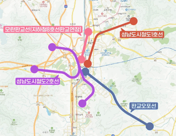 À̹ø °èȹ¿¡ ¹Ý¿µµÈ ¼º³²½Ã °ü·Ã ³ë¼±Àº ¸ðµÎ 4°³·Î, ±âÁ¸¿¡ ¹Ý¿µµÅ ÀÖ´ø ÁöÇÏö 8È£¼± ¿¬Àå»ç¾÷(¸ð¶õÂ÷·®±âÁö~ÆÇ±³¿ª, 3.94km)Àº À¯ÁöµÆ°í, ÆÇ±³~¿ÀÆ÷°£ öµµ»ç¾÷(ÆÇ±³¿ª~¿ÀÆ÷, 9.5km)Àº ½Å±Ô »ç¾÷À¸·Î Æ÷ÇԵƴÙ. ¾Æ¿ï·¯ ¼º³²µµ½Ãöµµ 1È£¼±(ÆÇ±³¿ª~»ó´ë¿øµ¿, 9.9km)°ú ¼º³²µµ½Ãöµµ 2È£¼±(º»¼±: ±ÝÅ䵿~Á¤ÀÚ¿ª 10.90km, Áö¼±: ¿îÁßµ¿~¹éÇöµ¿ 5.96km)Àº ±âÁ¸ °èȹÀÇ ³ë¼± ¼±ÇüÀ» Á¶Á¤ÇØ ¹Ý¿µµÆ´Ù.