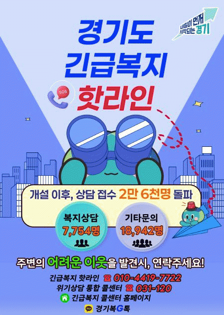 °æ±âµµ°¡ 2022³â 8¿ùºÎÅÍ À§±âµµ¹Î ¹ß±¼À» À§ÇØ ¡®±ä±Þº¹Áö ÇÖ¶óÀΡ¯À» ¿î¿µÇÑ °á°ú 3³â 3°³¿ù ¸¸¿¡ »ó´ã Á¢¼ö 2¸¸ 6õ ¸íÀ» ³Ñ¾î¼¹´Ù.