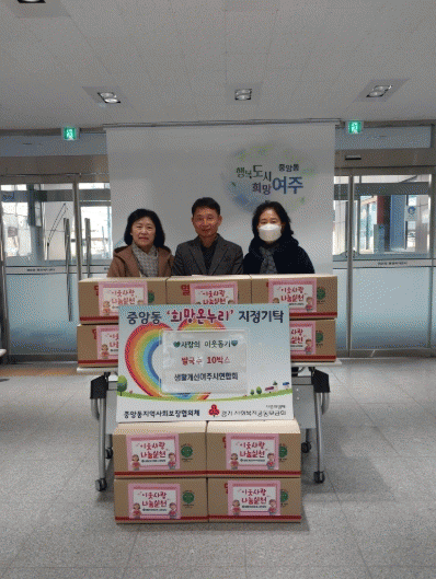 [NWS¹æ¼Û=Çѽ¸ñ ±âÀÚ]¿©ÁÖÁö±¸ »ýȰ°³¼±È¸´Â Áö³­ 22ÀÏ ¿¬¸»À» ¸Â¾Æ Áö¿ª»çȸ Ãë¾à°èÃþÀ» µ½±â À§ÇØ ½Ò±¹¼ö 10¹Ú½º¸¦ Áß¾Óµ¿ÇàÁ¤º¹Áö¼¾ÅÍ¿¡ ±âŹÇß´Ù.