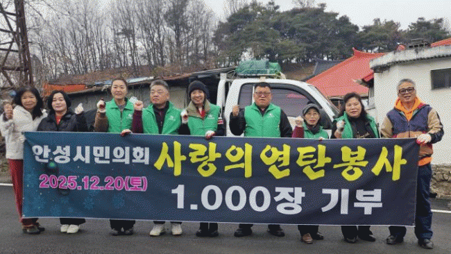 ¾È¼º½Ã¹ÎÀÇȸ´Â Áö³ 12¿ù 20ÀÏ ±Ý±¤¸é Ãë¾à ¾î¸£½Å°¡±¸ 2°¡±¸¿¡ °¡±¸´ç ¿¬Åº 500À徿 ÃÑ 1,000ÀåÀ» ±âºÎÇßÀ¸¸ç, À̳¯ ȸ¿ø 10¸íÀÌ Á÷Á¢ Âü¿©ÇØ ¿¬ÅºÀ» Àü´ÞÇß´Ù. Ãß¿î ³¯¾¾ ¼Ó¿¡¼µµ ȸ¿øµéÀº ¿¬ÅºÀ» ³ª¸£¸ç ÀÌ¿ô»ç¶ûÀ» ½ÇõÇß´Ù.