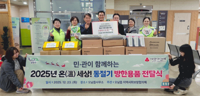 [NWS¹æ¼Û=Çѽ¸ñ ±âÀÚ]³²¾çÁֽô 23ÀÏ ¿À³²À¾ Áö¿ª»çȸº¸ÀåÇùÀÇü°¡ ¡®2025³â ¿Â(è®)¼¼»ó! µ¿Àý±â ¹æÇÑ¿ëǰ Áö¿ø¡¯»ç¾÷À» ÅëÇØ º»°ÝÀûÀÎ ÇÑÆÄ¸¦ ¾ÕµÎ°í Ãë¾à°èÃþ º¸È£¿¡ ³ª¼¹´Ù°í ¹àÇû´Ù.