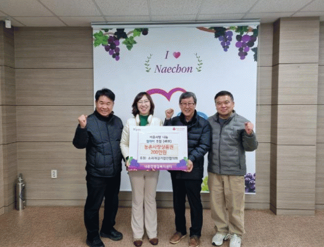 [NWS¹æ¼Û=Çѽ¸ñ ±âÀÚ]Æ÷õ½Ã ³»Ã̸é ÇàÁ¤º¹Áö¼¾ÅÍ´Â Áö³ 24ÀÏ ¼Ò¸®°³±æ±â¾÷ÀÎÇùÀÇȸ°¡ ³óÃÌ»ç¶û»óǰ±Ç 200¸¸ ¿ø »ó´çÀ» °æ±â »çȸº¹Áö°øµ¿¸ð±Ýȸ¿¡ ±âŹÇÏ¸ç ¡®ÀÌ¿ô»ç¶û ³ª´® ¸±·¹ÀÌ 48È£¡¯¿¡ µ¿ÂüÇß´Ù°í ¹àÇû´Ù.