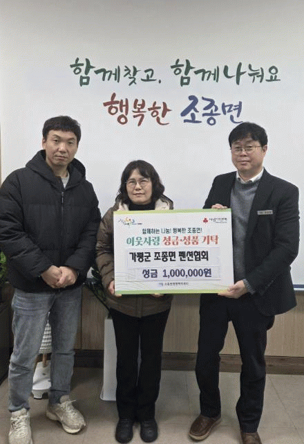 [NWS¹æ¼Û=Çѽ¸ñ ±âÀÚ]°¡Æò±º Á¶Á¾¸é Ææ¼ÇÇùȸ´Â Áö³ 24ÀÏ Á¶Á¾¸é ÇàÁ¤º¹Áö¼¾Å͸¦ ¹æ¹®ÇØ ÀÌ¿ôµ½±â ¼º±Ý 100¸¸¿øÀ» ±âŹÇÏ¸ç ¿Â±â¸¦ ´õÇß´Ù.