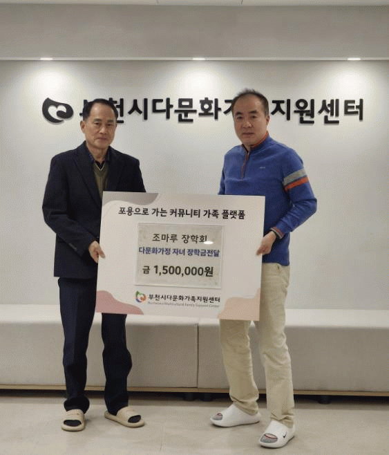 [NWS¹æ¼Û=Çѽ¸ñ ±âÀÚ]ºÎõ½Ã´Ù¹®È°¡Á·Áö¿ø¼¾ÅÍ´Â Á¶¸¶·çÀåÇÐȸ¿Í ÇÔ²² ´Ù¹®È°¡Á¤ Àڳฦ À§ÇÑ ÀåÇÐ±Ý Àü´Þ½ÄÀ» ÁøÇàÇß´Ù°í ¹àÇû´Ù.