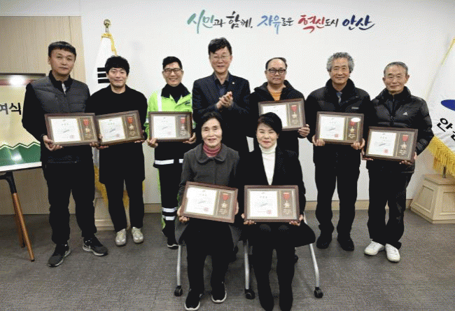 [NWS¹æ¼Û=Çѽ¸ñ ±âÀÚ]¾È»ê½Ã´Â Áö³ 29ÀÏ ½Ã¹ÎÀÇ ¾ÈÀü°ú ÄèÀûÇÑ µµ½Ãȯ°æ Á¶¼º¿¡ ±â¿©ÇÑ È¯°æ¹ÌÈ¿ø 8¸íÀ» ¸ð¹ü ½Ã¹ÎÀ¸·Î ¼±Á¤Çϰí ǥâÀåÀ» ¼ö¿©Çß´Ù°í 30ÀÏ ¹àÇû´Ù.